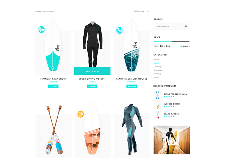 product list5Thanks to WaveRide’s great assortment of modern shop page templates and its full compatibility with the most popular & free eCommerce plugin, the WooCommerce, creating a captivating online store is as easy as it gets.Online StoreYou’ll find everything you need to create a contemporary online store right here. 6Product previewsLaunch your