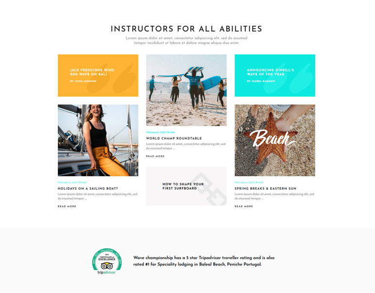 tripadvisor7Your visitors can make bookings in a straightforward and intuitive way - Booked Appointment Booking plugin comes as a bundle with the theme. You can also feature Tripadvisor ratings & a whole lot more.Booking and MoreWaveRide is packed with every single element and feature your new website can need. Tons of useful